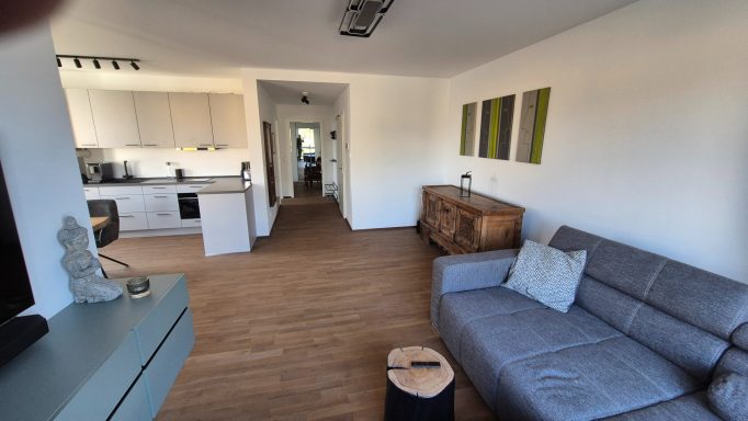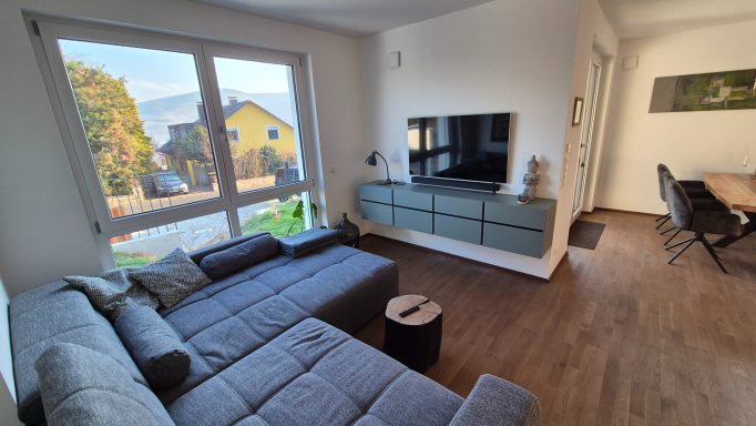 Die Anfang 2025 fertiggestellte, 72m² große, exklusiv eingerichtete Wohnung in einem Mehrparteienhaus befindet sich im Erdgeschoss mit einem rollstuhlgerechten Zugang über den Haupteingang – zusätzlich gibt es noch einen direkten Zugang von Ihrem Privatparkplatz über eine kleine Treppe, über die Terrasse direkt in die Wohnung.